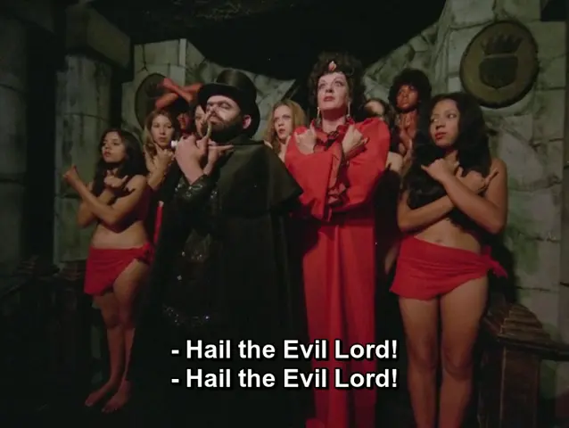 But then, that third act hits. It opens with gratuitous nudity and Exorcist “inspired” antics. We are then transported to a fever-dream satanic wedding with (more) nudity, sacrifices, and demonic dancing. This goes on for about thirty minutes and, I have to admit, it’s pretty enthralling. The ceremonies are hosted by Coffin Joe. He is the alter ego of our lead actor and is apparently the villain in some dozen or more Brazilian horror movies. Turns out this movie is a meta analysis of horror movies themselves. I don’t know if I can fully recommend watching it but Exorcismo Negro was surprisingly weird and interesting for such a cheap piece of crap.